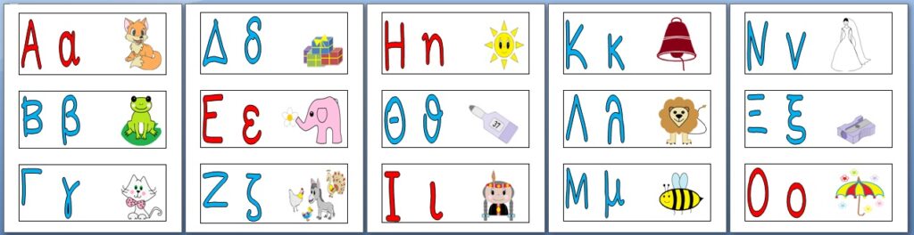 έγχρωμες καρτέλες με τα 24 γράμματα για εκτύπωση και πλαστικοποίηση