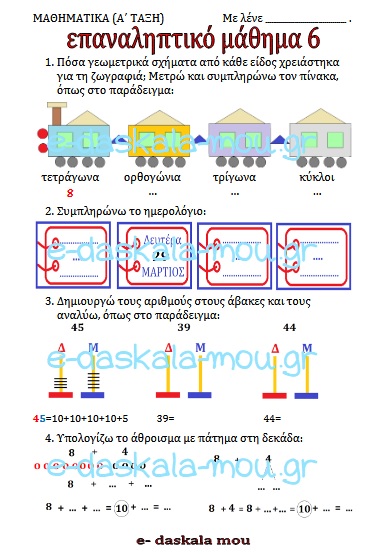 ΜΑΘΗΜΑΤΙΚΑ Α΄ ΔΗΜΟΤΙΚΟΥ – επαναληπτικό μάθημα 6