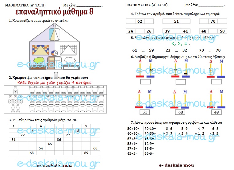 ΜΑΘΗΜΑΤΙΚΑ Α΄ ΔΗΜΟΤΙΚΟΥ – επαναληπτικό μάθημα 8 30Ιούν 20242 Ιούν 2025Προσθήκη σχολίου ΜΑΘΗΜΑΤΙΚΑ Α΄ ΔΗΜΟΤΙΚΟΥ – επαναληπτικό μάθημα 8 (Οι αριθμοί μέχρι το 70 – Πράξεις – Μέτρηση – Συμμετρία) 57. επαναληπτικό μάθημα 8Λήψη