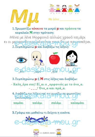 ΓΛΩΣΣΑ Α΄ ΔΗΜΟΤΙΚΟΥ – Μμ – ενσυνείδητη επεξεργασία γράμματος