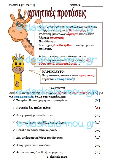 Γλώσσα Β΄ Δημοτικού – είδη προτάσεων (αρνητικές προτάσεις)