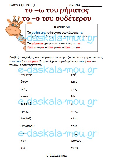 Γλώσσα Β΄ Δημοτικού – ουδέτερα σε -ο και ρήματα σε -ω 12Αυγ 202429 Μάι 2025Προσθήκη σχολίου Γλώσσα Β΄ Δημοτικού – ουδέτερα σε -ο και ρήματα σε -ω ουδέτερα σε -ο, ρήματα σε -ωΛήψη