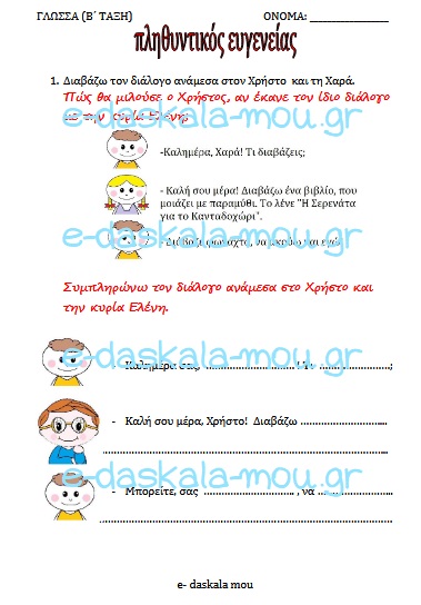 Γλώσσα Β΄ Δημοτικού -πληθυντικός ευγενείας 11Αυγ 20241 Ιούν 2025Προσθήκη σχολίου Γλώσσα Β΄ Δημοτικού -πληθυντικός ευγενείας 4. Πληθυντικός ευγενείαςΛήψη