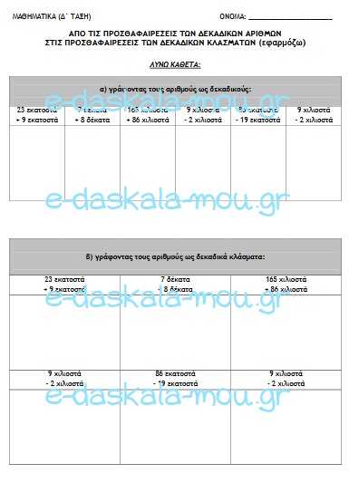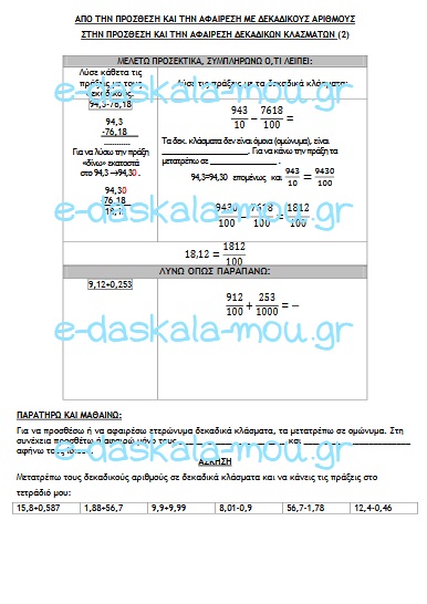 ΕΦΑΡΜΟΓΕΣ – Από την πρόσθεση και την αφαίρεση με δεκαδικούς αριθμούς στην πρόσθεση και την αφαίρεση με δεκαδικά κλάσματα (3)
