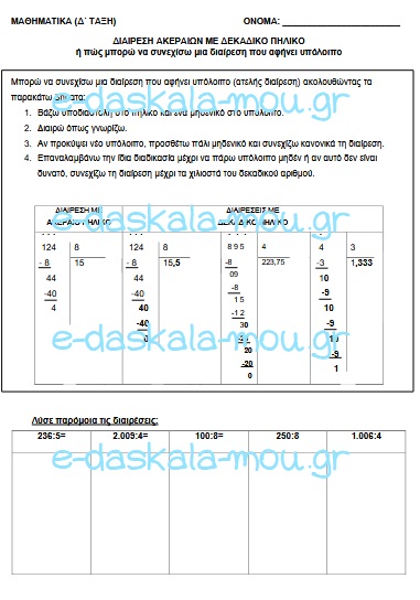 Διαίρεση ακεραίων με δεκαδικό πηλίκο
