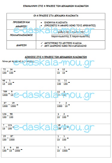 Επανάληψη στις 4 πράξεις των δεκαδικών κλασμάτων