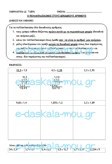 Ο πολλαπλασιασμός στους δεκαδικούς αριθμούς