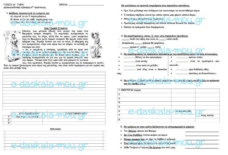 Ασκήσεις επανάληψης και κριτήριο αξιολόγησης στην ενότητα “Η παράσταση αρχίζει” (2 φύλλα εργασίας)