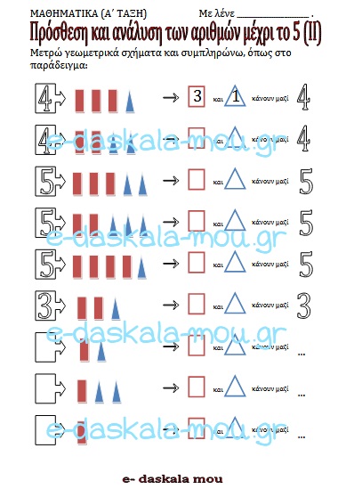 ΜΑΘΗΜΑΤΙΚΑ Α΄ ΔΗΜΟΤΙΚΟΥ – Πρόσθεση και ανάλυση των αριθμών μέχρι το 5 (ΙΙ) 29Ιούν 20243 Ιούν 2025Προσθήκη σχολίου ΜΑΘΗΜΑΤΙΚΑ Α΄ ΔΗΜΟΤΙΚΟΥ – Πρόσθεση και ανάλυση των αριθμών μέχρι το 5 (ΙΙ) 13. Πρόσθεση και ανάλυση των αριθμών μέχρι το 5 (ΙΙ)Λήψη