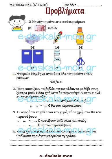 ΜΑΘΗΜΑΤΙΚΑ Α΄ ΔΗΜΟΤΙΚΟΥ – Προβλήματα (4) 29Ιούν 20242 Ιούν 2025Προσθήκη σχολίου ΜΑΘΗΜΑΤΙΚΑ Α΄ ΔΗΜΟΤΙΚΟΥ – Προβλήματα (4) 37. προβλήματαΛήψη