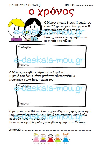 ΜΑΘΗΜΑΤΙΚΑ Β΄ ΔΗΜΟΤΙΚΟΥ – ο χρόνος