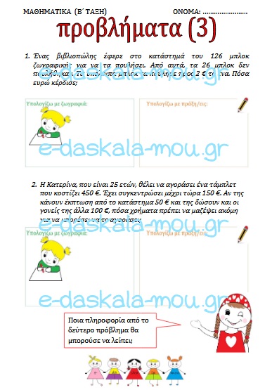 ΜΑΘΗΜΑΤΙΚΑ Β΄ ΔΗΜΟΤΙΚΟΥ – προβλήματα (γ) 13Αυγ 202427 Μάι 2025Προσθήκη σχολίου ΜΑΘΗΜΑΤΙΚΑ Β΄ ΔΗΜΟΤΙΚΟΥ – προβλήματα (γ) 1. Σύνθετα προβλήματα -3Λήψη