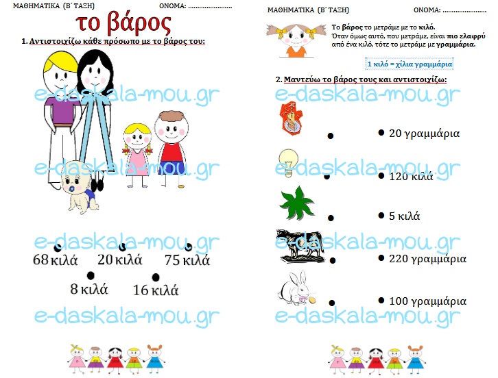ΜΑΘΗΜΑΤΙΚΑ Β΄ ΔΗΜΟΤΙΚΟΥ – το βάρος