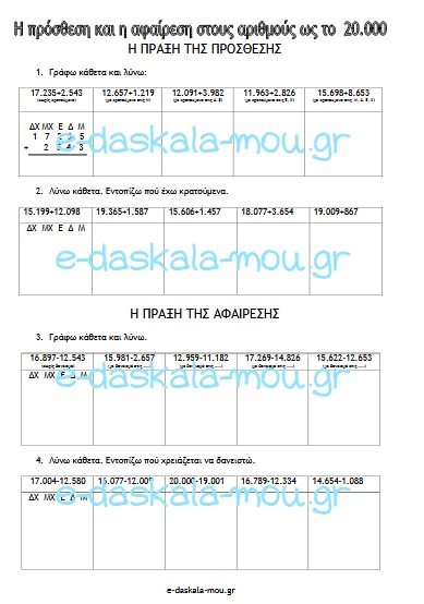 5. Η πρόσθεση και η αφαίρεση στους αριθμούς ως το 20.000