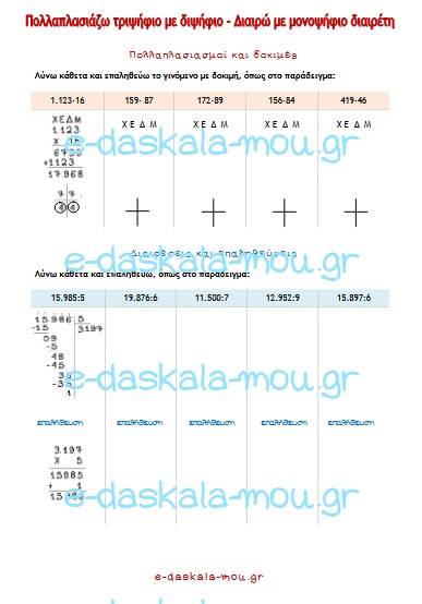 6. Πολλαπλασιάζω τριψήφιο με διψήφιο – Διαιρώ με μονοψήφιο διαιρέτη
